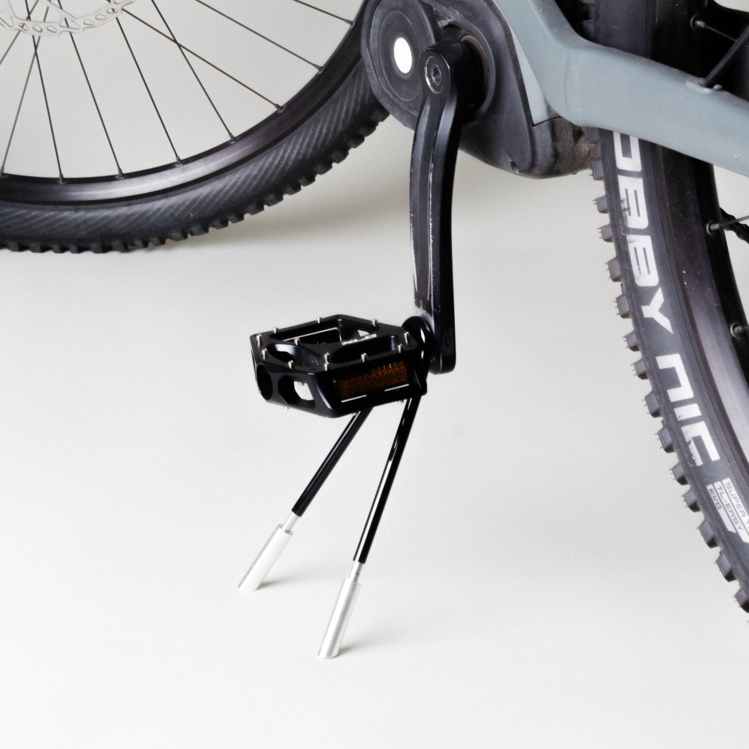 Dieser abnehmbare, einstellbare Fahrradständer ist ideal für (E-)Fullys mit einem Pedal-Boden-Abstand von ca. 15–19 cm. Länge einstellbar. Nur 125 g Gewicht!