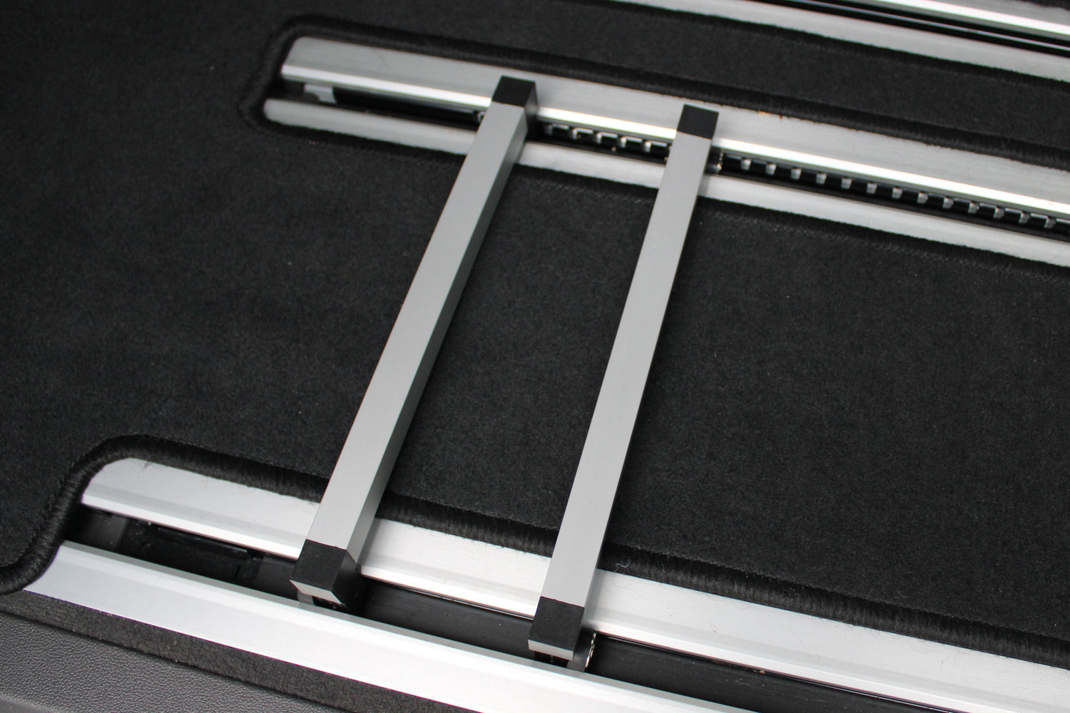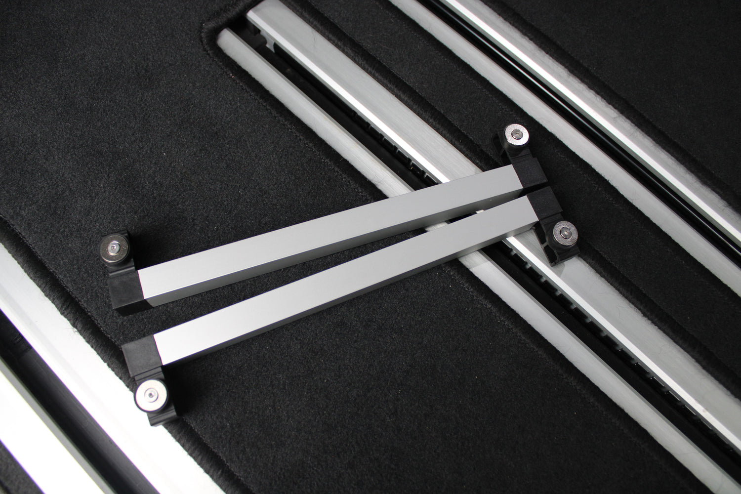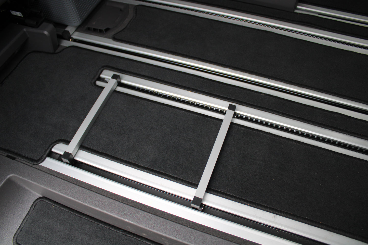 Hochwertige Aluminium-Traversen für VW Multivan T7. Werkzeuglose Montage im Schienensystem. Vielseitige Befestigungslösung für individuelle Aufbauten.
