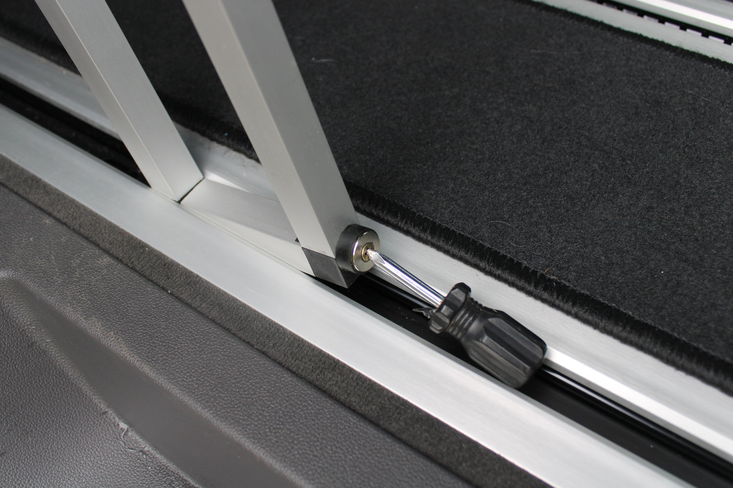 Vor Gebrauch auf festen Sitz im Schienensystem prüfen. Maximale Belastung beachten. Nur für den vorgesehenen Verwendungszweck nutzen. Nur bei stehendem Fahrzeug verwenden.