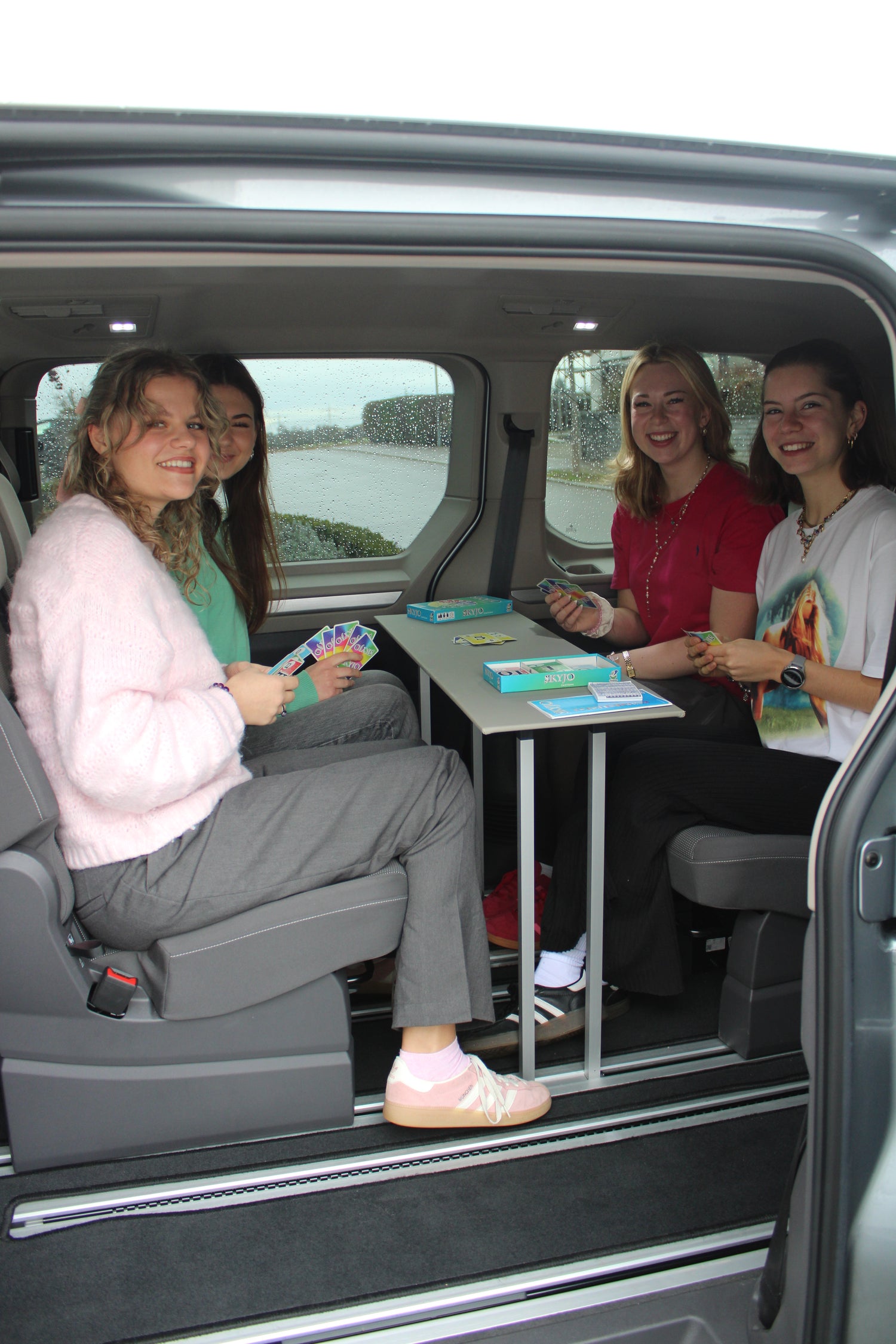 Exklusiver Klapptisch für den VW Multivan T7 an dem sage und schreibe 4 Personen Platz finden.